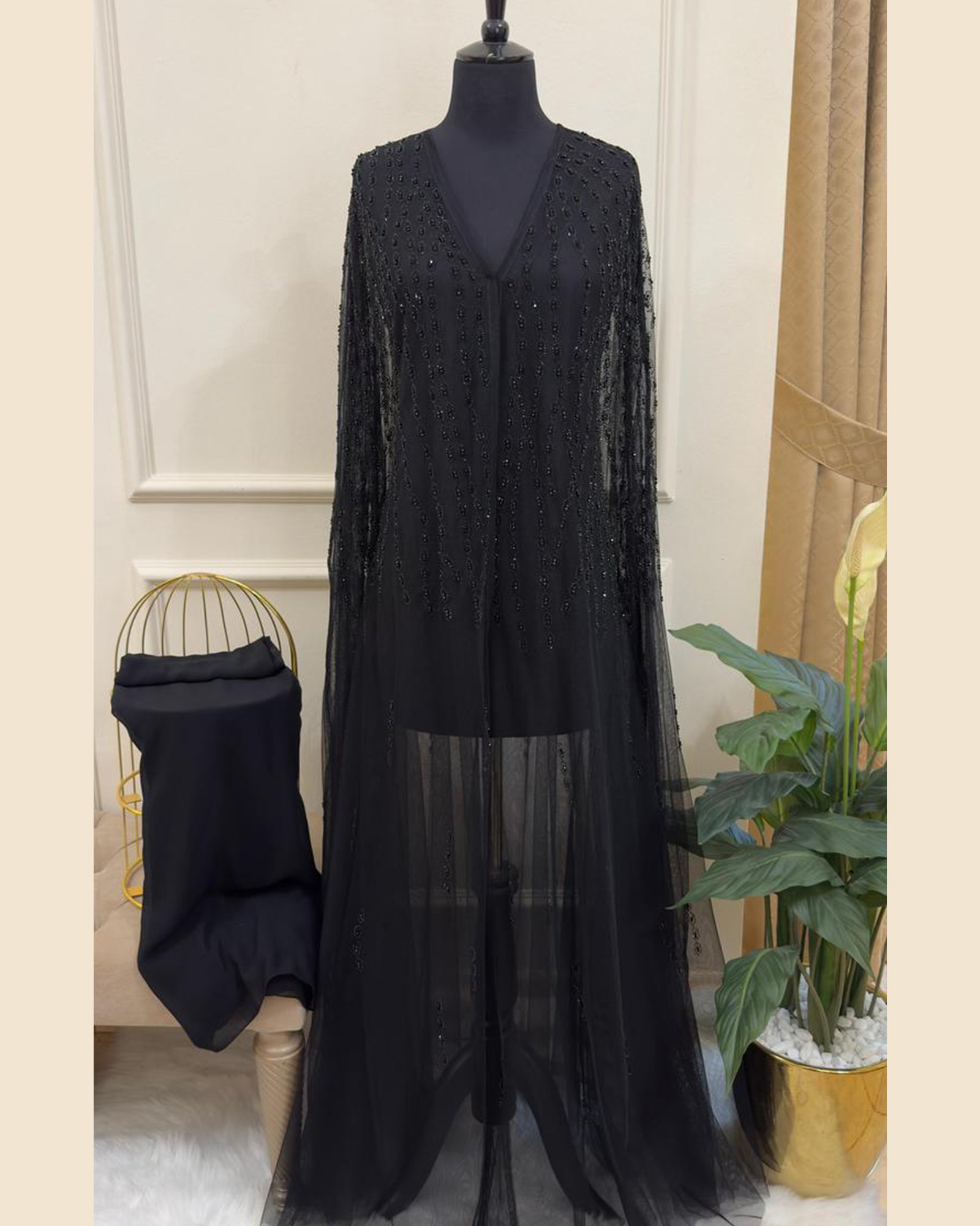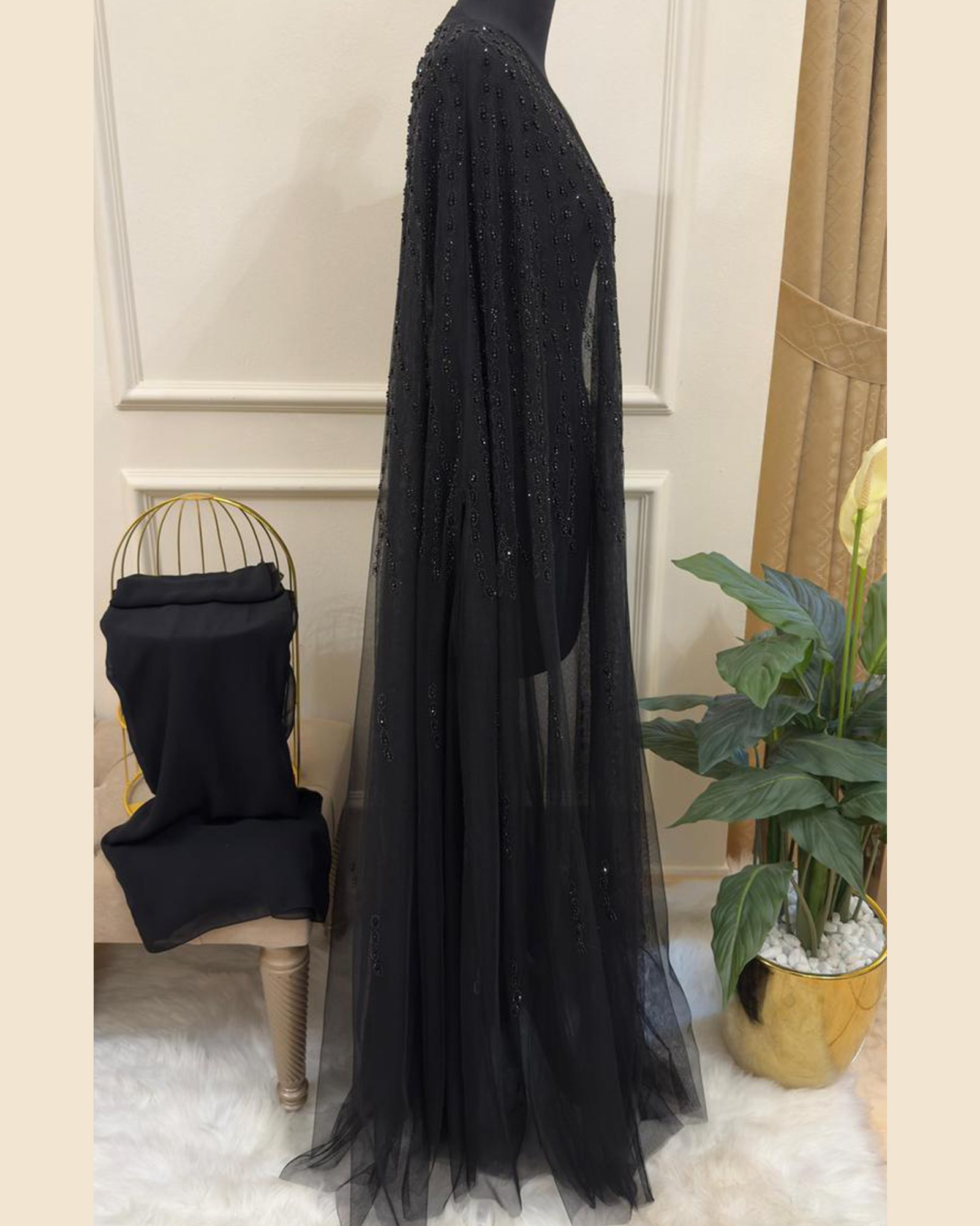 A statement black Abaya Set designed for formal gatherings, Ramadan evenings, special occasions, and elevated luxury wear — crafted to reflect graceful movement, refined glamour, and timeless sophistication.
