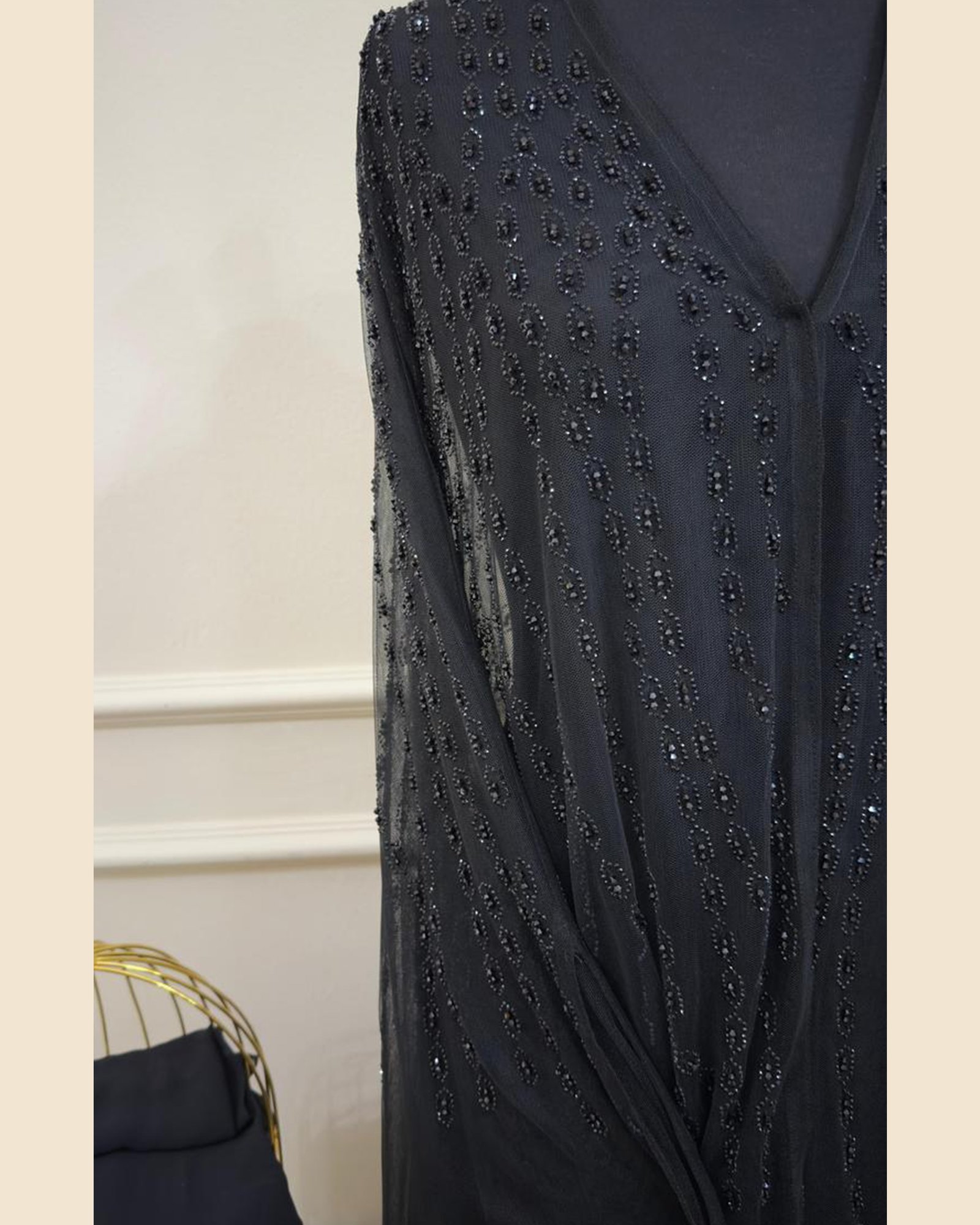 - Embellished flowing sleeves
